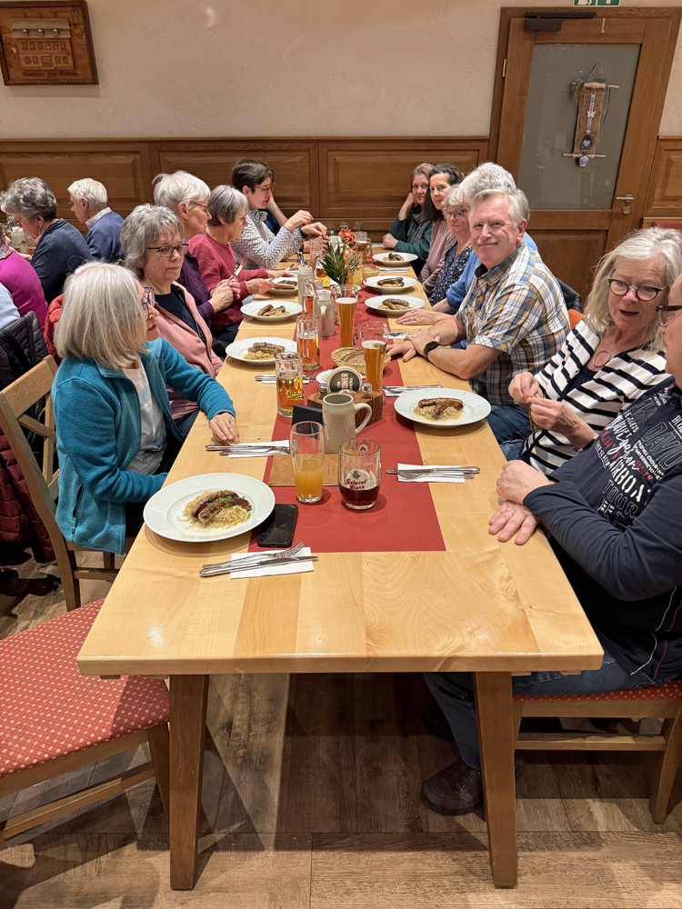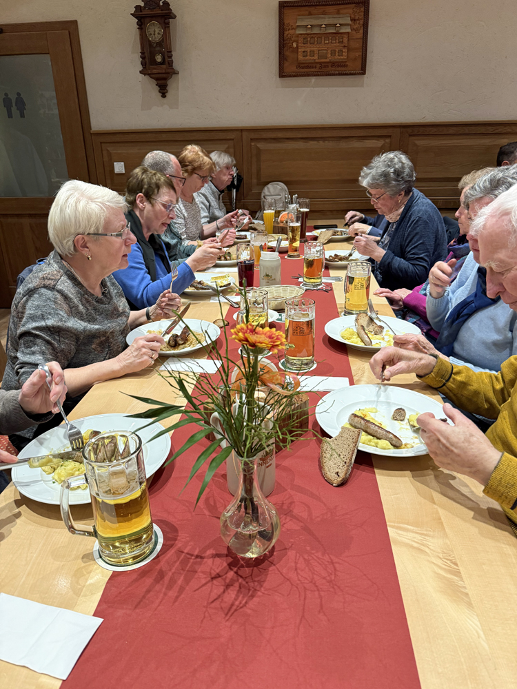 Unsere Bratwurstwanderung hat am Mittwoch den 4. März 2026 stattgefunden. Ziel ist wie jedes Jahr das „Schlössla“ in Tennenlohe beim Fritz. Gestartet wurde pünktlich am Roncallistift, Haupteingang um 18:30 Uhr. Es waren 20 Mitglieder bereit, den Weg nach Tennenlohe mit zugehen. Der Mond war leider zu diesen Zeitpunkt noch nicht zu sehen. Später auf dem Rückweg dann schon. Im Schlössla waren noch 5 weitere Mitglieder mit uns anwesend. Bei Bratwurst und guten Getränken war es ein sehr geselliger Abend. Gerne nächstes Jahr wieder.